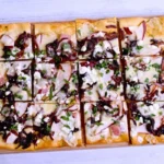 When serving this irresistible caramelized pear and goat cheese flatbread, consider pairing it with a crisp arugula salad dressed with balsamic vinaigrette. The peppery greens and tangy dressing will complement the sweet and savory flavors of the flatbread perfectly. For a heartier meal, serve the flatbread alongside a bowl of butternut squash soup or a roasted vegetable medley. If you’re hosting a gathering, cut the flatbread into smaller pieces and serve as an appetizer alongside a charcuterie board filled with assorted cheeses, cured meats, and olives. To elevate the presentation, garnish the flatbread with a drizzle of honey and a sprinkle of chopped walnuts or fresh herbs like thyme or rosemary. No matter how you choose to serve it, this delectable fall recipe is sure to impress your guests!
